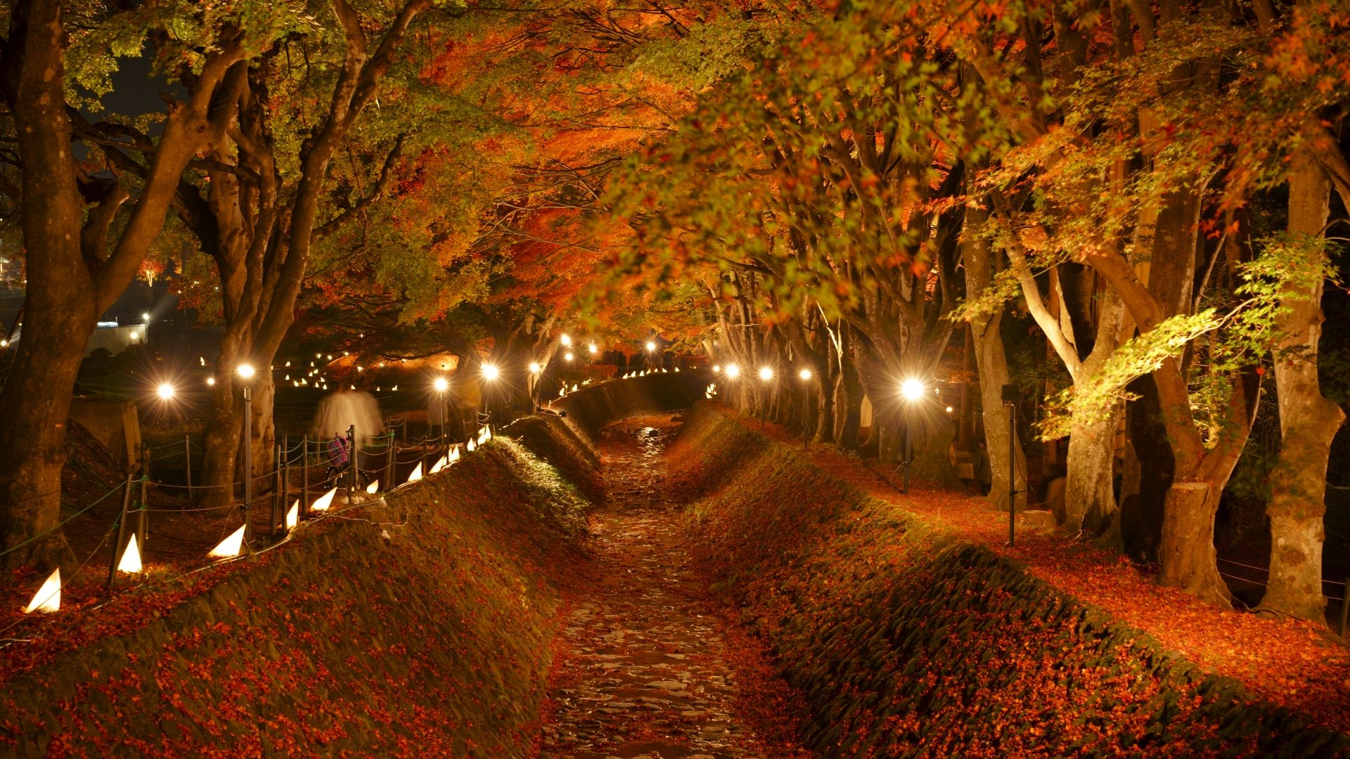 From early to mid November, the autumn leaves around Kawaguchiko Lake area will be illuminated during the night time during the Autumn Leaves Festival. The festival is held all day with many food stalls and performances held around the area.